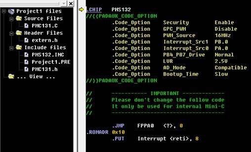 include files 里面的*.PRE文件中,*代表項目名。當(dāng)項目已經(jīng)建立后,一般通過此處來更換不同的IC型號。將新選擇的芯片型號更改在“.CHIP ”