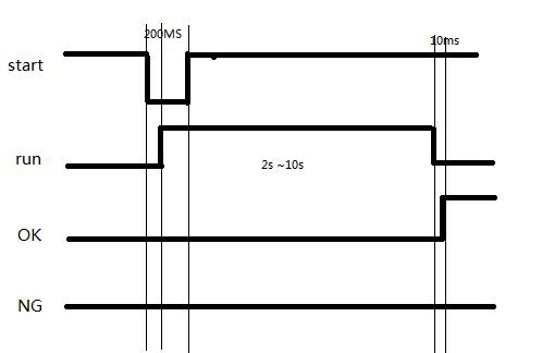 4OK或者NG信號如果起翻轉,比如已經是H電平,那么在下次IC進料或者重新夾好時會恢復成初始值L電平。(IC remove時,NG紅燈閃爍,是為1.5HZ的方波;IC NG時,紅燈不閃,是H電平)